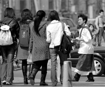 這家比薩店位于北京第二外國語學(xué)院北門,扮成“小沈陽”的服務(wù)員在北門十字路口發(fā)傳單,許多學(xué)生從他身邊走過時紛紛回頭!斑h(yuǎn)看還挺像的”,二外的孫同學(xué)說,自己和同學(xué)進(jìn)去試吃了傳單上的“蘇格蘭打鹵面”,感覺和西餐中的意大利面差不多。