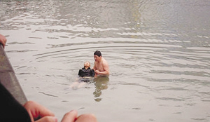 網(wǎng)友zcxyh介紹說(shuō),出事地點(diǎn)位于常州市中心附近一座比較著名的公園——蘭園旁的白蕩浜河,事發(fā)當(dāng)天,見(jiàn)到女子跳河后,這位和女兒在公園散步的男子二話不說(shuō),脫下衣褲就跳入冰冷的河水中,雖然救人的中年男子在水中凍得直打哆嗦,但他還是堅(jiān)持游到輕生女子跟前,不顧一切地把女子往岸邊拉。警方趕到時(shí),救人的中年男子把警方投遞來(lái)的繩索和救生圈套在女子身上,成功地將女子營(yíng)救上岸后,中年男子也不多話,穿起衣服后悄悄地走了!斑@一幕讓我感動(dòng),因此,趕緊拿出相機(jī),拍攝了整個(gè)過(guò)程。”