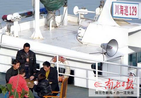 從網友“特級警報333”拍攝的畫面來看,船上有四男一女,其中三男一女正在打牌,另一人在觀戰(zhàn)。另一名為“順慶一貓”網友則稱,他在今年2月12日也拍下了一幅圖片,當時是一群人在海事船上打麻將,當發(fā)現有人拍照時,船上的人立即把麻將桌收了起來。這位網友也在網上發(fā)了兩張打麻將的圖片。網友們在圖片的回帖中發(fā)出了“這樣當公務員好舒服啊”、“上班時間打牌,應該下崗”、“有關部門應該查處”的議論。