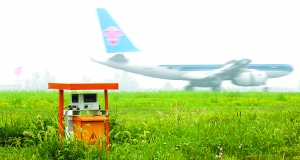 機場內(nèi)驅(qū)鳥措施千奇百怪,在草坪等各個角落,放置著500多套各類驅(qū)鳥設備。