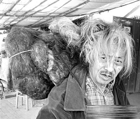 昨日上午,遂寧市靈泉寺坡頂,一個奇特老人正在采藥:他背上背著一個脹鼓鼓的黑布袋,這布袋同老人的頭發(fā)緊緊相連。布袋里裝的是什么?老人挖藥材時為什么不卸下來?布袋為什么同他的頭發(fā)緊緊相連?在好奇的旁人強烈要求下,老人打開布袋:原來,布袋里裝的就是老人自己的、用繩子捆得結(jié)結(jié)實實的頭發(fā)。