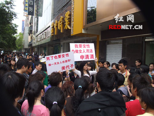 專程趕來長沙舉“變性”牌