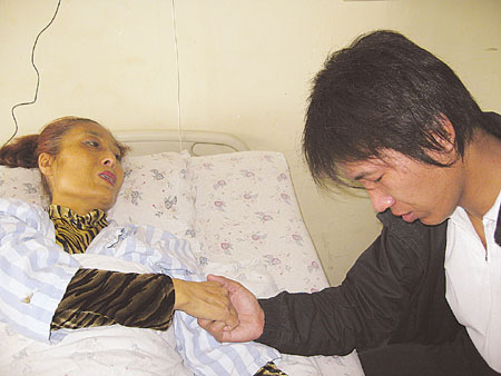 其實(shí),早在2006年,在母親患病中期,兒子常津銘就從網(wǎng)上查到關(guān)于肝臟移植手術(shù)的資料,但沒想到母親的病真的發(fā)展到這一步。當(dāng)看著往日的漂亮媽媽皮膚黑黃,人也越發(fā)消瘦,兒子的心里難受極了。他安慰母親:“老媽,你放心,需要換肝我一定給你!碑(dāng)時(shí),媽媽愣住了:“兒啊,你胡說什么,媽都這么大年紀(jì)了,你以后的路還長(zhǎng)著呢!”“不行,老媽,我能救你而不救,我會(huì)遺憾一輩子的!”