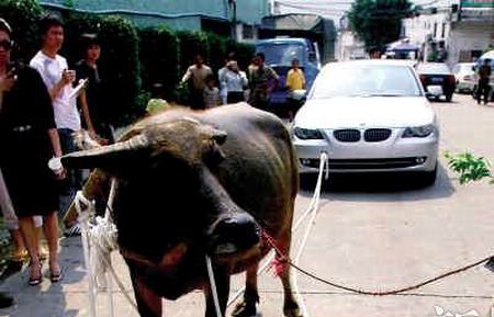 去年7月,她在廣州的鬧市中,上演了一出老牛拉寶馬的“拉風”事件。當時,因為才買不久的寶馬車出故障,馬映華沒有得到滿意和及時的解決而與經(jīng)銷商發(fā)生爭執(zhí),一氣之下,她找來了一頭水牛拉著寶馬車在維修點前“示威”。