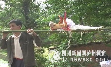 記者好奇地詢問了其中一位參加喪禮游行的村民。該村民說,“這是喪事,不過不是一般的喪事,而是喜喪。這是他們當(dāng)?shù)氐牧?xí)俗,只要是村里德高望重、壽終正寢的老人就可以辦這樣的喪事,意為圓圓滿滿地結(jié)束了一生。今天是喪禮的第二天,現(xiàn)在進(jìn)行的游行叫做“揚(yáng)名”,用意是要讓沿途的人都知道老人壽終的消息,同時(shí)也讓人們知道老人的兒女是何等孝順,這樣喜喪才能風(fēng)風(fēng)光光。游行中所抬的紙轎子叫做‘靈轎’,當(dāng)?shù)仫L(fēng)俗認(rèn)為可以將壽終者的靈魂通過法式寄放在這樣的轎子里。待游行結(jié)束,就要開始進(jìn)行‘飄燈’儀式了,將紙燈放入河中,隨波漂流,以此寄托對(duì)壽終者的思念!