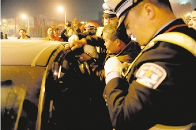 18日0時(shí)許,車玻璃被撬出一個(gè)縫,前來支援的中隊(duì)長侯克帥立即把警用瓦斯噴品從縫內(nèi)伸進(jìn),猛地噴了進(jìn)去,后把氣墊拉出。車內(nèi)3人立即低下頭,急拿手巾捂鼻子和嘴,但是他們拒不出來。司機(jī)竟突然發(fā)動(dòng)轎車,要向前開,趕到的潁河路派出所民警把警車堵在轎車前,轎車又向后退,交警的警車在后側(cè)把車堵死,怕該車向右側(cè)拐,第三輛警車把轎車右側(cè)也堵死。