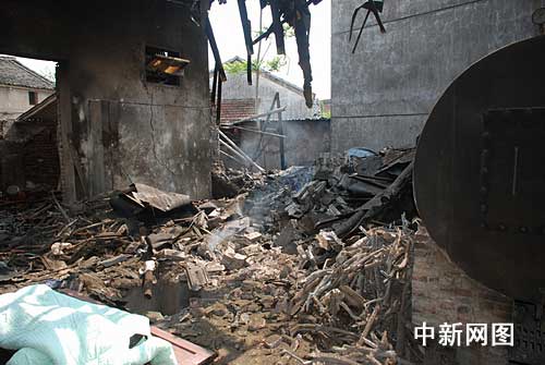 由于爆炸產(chǎn)生的巨大沖擊力,事故現(xiàn)場一片狼藉,到處都是破碎的磚瓦,房子的屋頂也因為爆炸時產(chǎn)生的沖力給震碎,現(xiàn)場不時的有破瓦掉落。同時,記者從圍觀群眾處了解到,事故發(fā)生時,在旁邊作業(yè)的一工人正被壓在碎瓦堆里,被壓著已有半個小時,生死未卜。