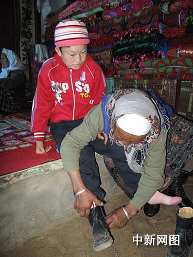 如今,20歲的麥爾孜依仍然不會(huì)說話,走起路來搖搖晃晃,除了吃飯以外,生活完全不能自理,但能聽懂簡單的哈薩克語。記者在采訪中發(fā)現(xiàn),媽媽比依臺(tái)坎始終牽著麥爾孜依的手,時(shí)不時(shí)的為麥爾孜依擦擦鼻涕,整理帽子。麥爾孜依則時(shí)不時(shí)的對(duì)父母經(jīng)常報(bào)以燦爛而羞澀的笑容。