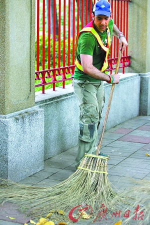 “五一”前夕,廣州市環(huán)衛(wèi)局組織起在穗外籍人士體驗(yàn)環(huán)衛(wèi)工作,使更多的人理解和支持環(huán)衛(wèi)工作,同時(shí)也反映出普通環(huán)衛(wèi)工人對(duì)城市建設(shè)貢獻(xiàn)的點(diǎn)點(diǎn)滴滴。羅密歐自愿參加了這次活動(dòng),短短半日時(shí)間,他除了清掃馬路外,還嘗試了鏟“牛皮癬”、乘坐小黃車(chē)收運(yùn)垃圾和到居民樓收垃圾袋等環(huán)衛(wèi)工作!俺隽艘簧砗,比去健身房效果好多了。我現(xiàn)在想去洗澡!”工作完畢后,羅密歐用流利的中文笑著告訴記者,還一邊擺出“鬼馬”的造型,讓人忍俊不禁。羅密歐今年30出頭,來(lái)廣州已兩年半,現(xiàn)在是一家意大利餐館的副董事長(zhǎng)兼市場(chǎng)總監(jiān),偶爾也會(huì)在廣州的英語(yǔ)電視節(jié)目上客串主持。他說(shuō),其實(shí)環(huán)衛(wèi)工作對(duì)他來(lái)說(shuō)不算十分新鮮,“我18歲中學(xué)畢業(yè)后第一份工就是室內(nèi)保潔,所以對(duì)環(huán)衛(wèi)工人的辛苦我有同感!