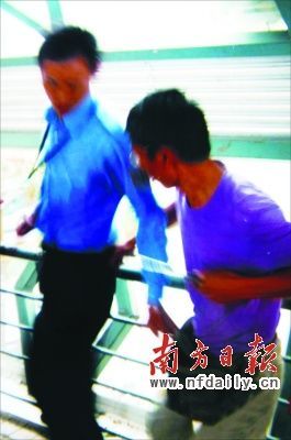 昨天下午2時(shí)07分,深圳前進(jìn)二路沃爾瑪門(mén)口天橋上,新安街道城管執(zhí)法隊(duì)員練士滔被攤販老帥一刀從左腰背插入,刺穿前胸,轉(zhuǎn)過(guò)身后,他的右胸又挨了第二刀。老帥隨后逃跑,其妻張金群被警方帶走。