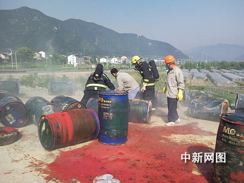 中新網(wǎng)臺州4月28日電(記者 江耘 通訊員 陳瑛子) 4月28日一大早,浙江臺州三門縣環(huán)保局便接到群眾舉報,在該縣海游鎮(zhèn)潺岙村附近的公路上發(fā)現(xiàn)大量塑料桶包裝的不明液體,十分刺鼻,疑似有人非法轉(zhuǎn)移、傾倒化工廢液。