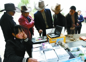 在孟青川的照相攤位邊,19歲的夏春菊正在賣紀(jì)念品。夏春菊有個(gè)16歲的弟弟,地震時(shí)不幸遇難。夏春菊賣的照片10元3張,其中一張清楚地標(biāo)著她弟弟生前就讀的茅壩中學(xué)的位置。