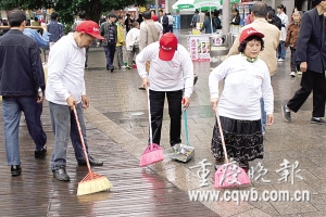 在“五一”期間,我市500多名“愛心亭殘疾人幫扶培訓中心”的學員,分成30個隊伍,在渝中區(qū)、江北區(qū)、渝北區(qū)、南岸區(qū)、九龍坡區(qū)、沙坪壩區(qū)等主城街道,開展“我勞動,我快樂”的活動,上街頭義務清掃。(記者 李珩 攝影報道)