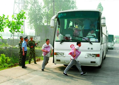 現(xiàn)場(chǎng)指揮部隨即成立,合力研究警戒轉(zhuǎn)移方案,決定再次對(duì)50名囚犯的身體狀況進(jìn)行仔細(xì)檢查。與此同時(shí),增強(qiáng)警戒,聯(lián)系客車(chē)處置事故,調(diào)查取證,疏散人員,后勤保障,現(xiàn)場(chǎng)處險(xiǎn)工作進(jìn)一步鋪開(kāi)。30多名增援的獄警和武警官兵一跳下車(chē),就立即形成了一道堅(jiān)不可摧的人墻。