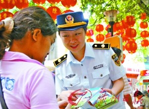 昨日上午10時左右,一個個身著嶄新的天藍(lán)色上衣、墨綠色的長褲,精神飽滿的城管隊員在北京路、上下九步行街、天河城廣場附近街頭以及全市各區(qū),踏著整齊步伐,微笑著向沿路市民派發(fā)宣傳冊,耐心地解答市民的疑問,為美麗的羊城增添了一道亮麗的風(fēng)景線。
