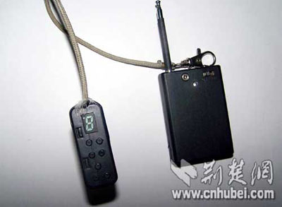 4人交待,“遙控器”名“鎖車干擾器”(如右圖),是上月從廣東買回的,準(zhǔn)備在武漢“大干一場(chǎng)”。當(dāng)日,他們用“鎖車干擾器”已打開2輛轎車車門,車內(nèi)沒有財(cái)物;開第3輛車車門時(shí)被抓。