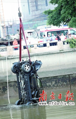 據(jù)了解,前日下午5時許,肇事車輛內(nèi)4人乘坐奔馳車,趕到廣州唱K喝酒之后,開車返回廣州某知名大酒店的途中,發(fā)生事故,車子沖進(jìn)珠江。