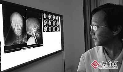 記者從院方了解到,小賀是頭外傷右肘部貫通傷,從X光片上可以看到,約長為8厘米的鋼筋刺進頭顱,目前有生命危險。由于不能確定頭顱內血管受損的情況,院方不敢輕易取出鋼筋,只有先請消防人員分別將刺進手臂和頭顱部分的鋼筋截斷,進行止血等分別處理、規(guī)避各種風險后,制定出最佳的方案才能實施手術。(記者 何謹)(春城晚報)
