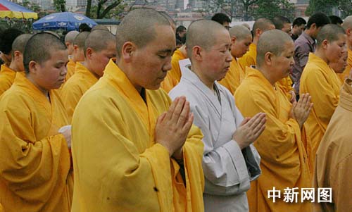中新網(wǎng)重慶5月12日電 (孟幻 張晅)12日,汶川大地震周年祭之時(shí),重慶佛教界人士在重慶華巖寺舉行悼念及祈;顒(dòng)。14時(shí)28分,在場(chǎng)僧眾及300余位信眾默哀3分鐘。隨后,華巖寺方丈道堅(jiān)法師帶領(lǐng)僧眾舉行祈福消災(zāi)法會(huì),為汶川地震災(zāi)區(qū)誦經(jīng)祈福,同時(shí)祈求風(fēng)調(diào)雨順,國(guó)泰民安。完