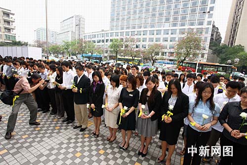 中新網(wǎng)廣州5月12日電 (記者 莫非 通訊員 楊明釗 黃永威 劉慧儀)由廣東多家新聞機(jī)構(gòu)和安利(中國)公司主辦的“5.12大地震周年影像展”,已經(jīng)在廣州市解放北路以太廣場安利越秀店鋪門前展出了5天,5月12日下午14時(shí)28分,上千名廣州市民與安利志愿者自發(fā)來到周年影像展現(xiàn)場悼念地震受難同胞。