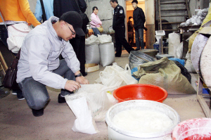 經(jīng)過(guò)一天的檢查,造假窩點(diǎn)的負(fù)責(zé)人一直沒(méi)有露面;槿藛T將全部藥品原料、成品裝袋,準(zhǔn)備沒(méi)收。幾名工人不斷地阻攔稽查人員,理由是“這些藥還沒(méi)干燥好,裝走了就不能賣了。”
