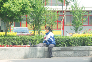 昨天11:00左右,在南樓五岔路口附近,一名身穿校服的外地女子不時穿梭在等紅燈的車輛中。與其他的乞討人員不同,這名女子不僅左臂放在塑料夾板上,還裹滿了紗布,女子滿臉痛苦的表情果然博得了不少司機的同情。一小時內(nèi),竟先后有20多名司機慷慨解囊。