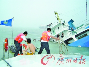 據(jù)廣州沙角海事處張杰副處長(zhǎng)介紹,昨天下午4時(shí)許,該海事處接到報(bào)警稱(chēng)“有船發(fā)生碰撞!”接警后,該海事處立即出動(dòng)包括海特1115號(hào)、海特1114號(hào)共8艘船只趕往事發(fā)海域。7分鐘后,他們便趕到了事發(fā)海域,而后立即開(kāi)展搜救落水船員行動(dòng)。