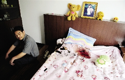 昨日上午,記者驅(qū)車趕到現(xiàn)場。走進(jìn)房間,防盜門、窗戶、地板、床上到處都是血跡。兩間臥室的席夢思被燒糊。