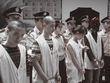 12月8日,4人再次到威遠(yuǎn),對作案環(huán)境及逃離路線進(jìn)一步熟悉。第二天傍晚6時30分,謝賢春開車到指定接應(yīng)地點后,帶上蒙瓊到金店外觀察,待男老板上樓后,向梁、錢二人發(fā)出信號。得手后,梁某慌不擇路向原定路線相反的方向逃跑,繞了一圈后竟準(zhǔn)時到達(dá)指定位置,3人乘警方尚未封閉進(jìn)出城路口之機(jī),開車逃向自貢。而在金店對面放風(fēng)的蒙瓊,在警方趕到現(xiàn)場時,仍以圍觀者身份站在一邊看熱鬧。