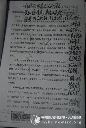 近日,溫家寶總理親筆回信,對(duì)北川女孩吳加勤表示親切的問(wèn)候,向北川陳家壩所有的父老鄉(xiāng)親表示良好祝愿。全文如下: