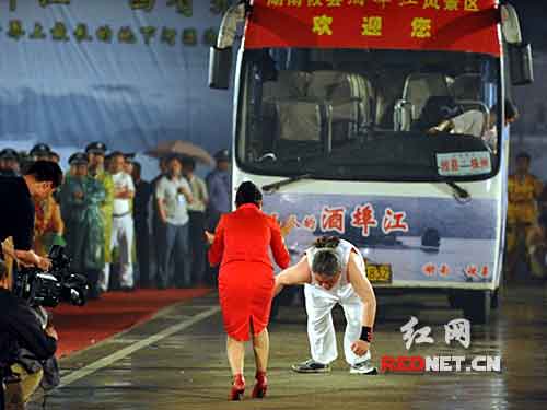 5月25日晚,在湖南株洲攸縣酒埠江風(fēng)景區(qū)國家地質(zhì)博物館的廣場(chǎng)上,燈照如晝,人潮鼎沸。攸縣奇人賀堅(jiān)馬成功打破用頭發(fā)拉動(dòng)汽車的吉尼斯世界紀(jì)錄,為中華兒女贏得了一個(gè)新的世界神奇。