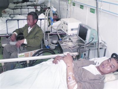 記者昨日中午1時許在市十一醫(yī)院急診室看到,4名農(nóng)民工3人躺在急診室病床上、1人坐在輪椅上。送他們來醫(yī)院的工友付師傅說,他們30多個英山縣民工在漢口火車站附近的航天花園4期工程做木工,完工后按工作量計算工錢,從今年2月6日至5月16日,他們的活已做完,工錢約25萬元,卻一直沒有拿到手。