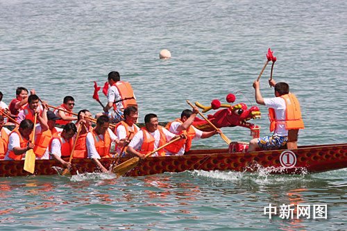 中新網(wǎng)和碩5月28日電(記者 汪金生)中國最大內(nèi)陸淡水湖博斯騰湖今天被喧鬧的鑼鼓聲和歡呼聲感染,當?shù)匾砸粓龃笮妄堉圪悜c祝傳統(tǒng)節(jié)日端午節(jié)。