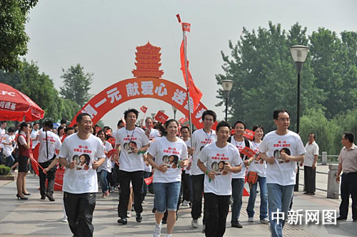 當(dāng)日,湖北籍奧運(yùn)冠軍楊威、高崚的帶領(lǐng)下,近300名武漢市民組成“漢口”、“漢陽”、“武昌”三個(gè)愛心方陣,手持“捐一元,獻(xiàn)愛心送營養(yǎng)”的小紅旗,身著統(tǒng)一的獻(xiàn)愛心T恤,沿著漢口江灘跑步前進(jìn),沿途不斷地向周邊行人和游客發(fā)放愛心貼紙,呼吁更多的武漢市民參與到該項(xiàng)活動(dòng)中來。