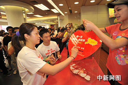 長跑活動(dòng)結(jié)束后,楊威和高崚一起來到附近開設(shè)募捐箱的肯德基餐廳,帶頭捐款,并帶動(dòng)了眾多市民加入該行列。該項(xiàng)募捐活動(dòng)自今日起將持續(xù)兩周。