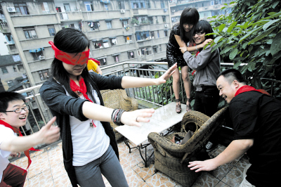 昨天下午三點,十八梯,一位穿黑連衣裙的美女站在中間指揮:“我們先去吃飯,待會集合去老街客棧玩捉迷藏,那里有好多玩具!边@人就是活動組織者,上海某廣告公司白領巍薇。巍薇是重慶人,酷愛游玩,每年兒童節(jié)都會和朋友們聚會。她說,本來以為這次活動在重慶組織不起來,沒想到在網(wǎng)上報名的人有214人,電話報名的有30多個。由于改了時間又趕上下雨,最終只來了十四人。