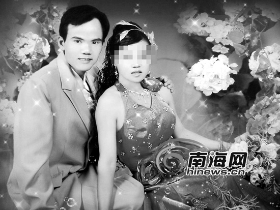 4日下午,在臨高縣公安局,南國都市報(bào)記者見到了黃竹新。黃竹新長得又黑又瘦,雖說才33歲,但看樣子感覺是已40歲出頭了。而他的妻子才23歲,相貌不錯(cuò),兩人的外觀相差很大。