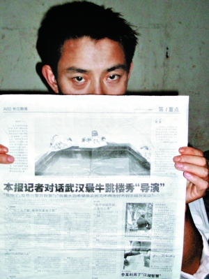 28歲,湖北孝感人,長期在漢口建筑工地務(wù)工,做過小包工頭,因大包工頭欠薪,他曾于2007年底,站在高樓頂討薪,成功拿到欠款。如此討薪奏效后,從2008年初到今年5月,他又幫助其他農(nóng)民工策劃多起“跳樓討薪”事件,被當(dāng)?shù)孛襟w稱為武漢最牛跳樓秀“導(dǎo)演”。