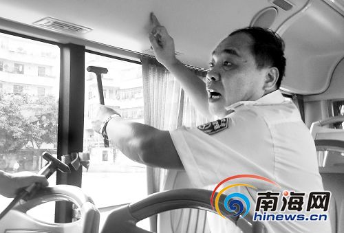 海口市運管處檢查組今天檢查了?谑泄还酒煜碌亩鄺l公交線路,在檢查10路公交車時,車上配置的一個樣式簡單的救生錘引起了檢查組的注意。司機介紹說,該救生錘是公司自己訂做的,長度大約有30厘米,比原來車上配置的救生錘長一倍多,重量卻是原來的3倍多!斑@種定做的救生錘樣式雖然比原來的丑陋,但卻更為實用”,司機表示。