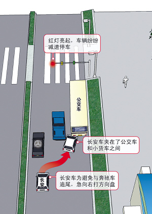 司機(jī):一是對(duì)著我行駛的車(chē)道撞過(guò)去,前面就是輛奔馳;要不然,就卡在公交車(chē)和貨車(chē)中間那個(gè)位置。我選擇了后者。