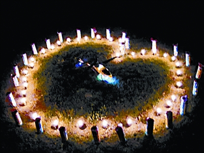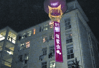 50支蠟燭擺成心形,兩個氫氣球拉起“劉某,我愛你”的紅色條幅,遙控直升飛機送情書(見上圖)。前晚10時許,湖北大學(xué)三期學(xué)生公寓E棟女生宿舍樓下,剛完成高考的天門小伙小吳成為這場校園求愛的主角。