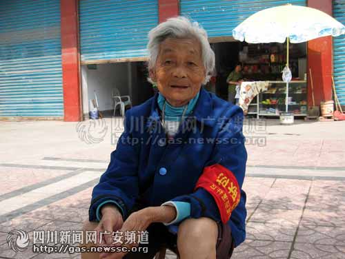 昨日中午,在廣安市城南五福西路出現(xiàn)了這樣的一幕:烈日下,一位頭發(fā)全白、穿著樸素、卷著褲管、手拿蒲扇的老太坐在街道邊的樹蔭下,袖子上戴著一個鮮紅的袖章,上面寫著“治安聯(lián)防”。當(dāng)時氣溫在30度左右,雖然是在樹蔭下,但是還是能感受到那股讓人煩躁和熱烘烘的暑氣。出于好奇,記者便上前問了個究竟。