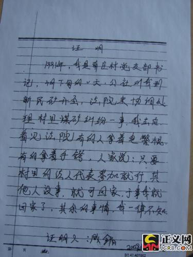 記者降低要求,“我們不采訪,也不看全部卷宗,只看一下調(diào)解書送達(dá)時(shí)當(dāng)事人的簽字!庇浾哌反復(fù)給郭講:如果村里的法人在送達(dá)回執(zhí)上簽了字,那就證明他們是無理上訪,我們新聞單位會(huì)給其作工作,建議他們息訪。這樣,對(duì)改變村民的敵對(duì)情緒,對(duì)南莊煤礦的正常生產(chǎn),對(duì)臨縣的穩(wěn)定和諧都有好處。