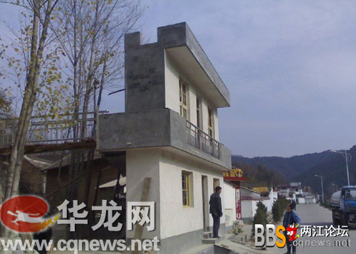 從正面看,這是一棟還算豪華的農(nóng)家兩層小洋房;但是從側(cè)面看,則是僅有1.5米的墻體,墻體背后是破舊的土坯房子。今天上午,這張被網(wǎng)友稱為中國(guó)最!伴T臉房”的照片,出現(xiàn)在華龍網(wǎng)兩江論壇上,引起網(wǎng)友的熱烈討論。