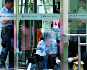事發(fā)中國(guó)銀行位于北科大籃球場(chǎng)西側(cè),高兩層,分為對(duì)私業(yè)務(wù)區(qū)和基金業(yè)務(wù)區(qū)。昨日中午12時(shí)10分許,顧客王明(化名)進(jìn)入該行準(zhǔn)備提款。“三排座位上坐著四五個(gè)顧客,兩個(gè)開放的銀行窗口前各有人在辦業(yè)務(wù)!蓖趺髡f。