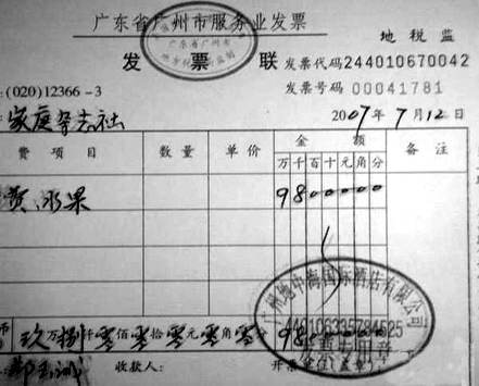 7月12日,一位署名為“小鷗gz”的網(wǎng)友在網(wǎng)上發(fā)表了《以“吃水果”為名給廣東婦聯(lián)開了100多萬虛假發(fā)票》的帖子。發(fā)帖者自稱是廣州地中海大酒店員工,偶然發(fā)現(xiàn)地中海大酒店于2007年給“廣東省婦聯(lián)單位家庭雜志社”虛開100多萬元的發(fā)票。