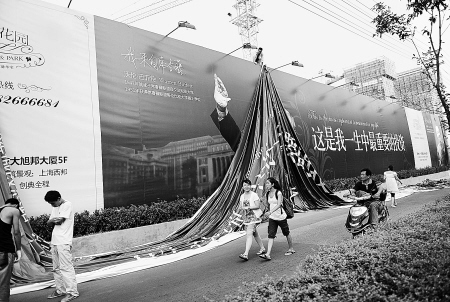 昨晚7時(shí)許,記者再次來(lái)到該樓盤(pán)外,看到很多工人正在做準(zhǔn)備,他們要將一幅新制作的廣告覆蓋在上面。新廣告上傳達(dá)的內(nèi)容和相關(guān)字樣沒(méi)什么變化,只是將名人頭像換成了“股神說(shuō)”“科學(xué)家說(shuō)”等字樣。幾位工作人員說(shuō),聽(tīng)說(shuō)這幾幅廣告涉嫌侵權(quán),公司才緊急將其換掉的。 (記者郭欣 實(shí)習(xí)生胡歲歲)