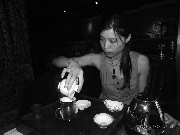 她身材瘦小,一身淡黃布裙,黑色長發(fā),今年只有26歲,2007年起,經(jīng)營著一家茶樓。