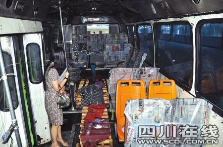 試驗(yàn)開始前,記者在試驗(yàn)現(xiàn)場打探了一番:試驗(yàn)車是一輛綠色的CFC6110D型公交車,正是與成都“6·5”公交燃燒事件同類又同色的車型。車廂頂棚夾層內(nèi),記者看到安置了一根管道,管道上有幾個(gè)噴霧龍頭狀的裝置,過道地上特別放置了一些木柴垛和衣物。特別的是,在左側(cè)倒數(shù)第二排的座位,即縱火嫌疑人事發(fā)時(shí)所坐的位置,試驗(yàn)人員放置了試驗(yàn)用的唯一動物活體——一只后腿捆綁、放在長方形紙盒里的兔子,車廂內(nèi)均勻地傾倒了汽油。在汽車的頭尾部,數(shù)十根控制、驅(qū)動線連接到控制臺處,一場完全按“6·5”公交燃燒事件9路公交車事發(fā)場景的試驗(yàn)即將開始。