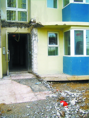 本報訊 據(jù)媒體報道,繼上海的“樓脆脆”后,京版“樓脆脆”也已現(xiàn)身——清河萊鎮(zhèn)香格里小區(qū)的11號樓門廳下陷,墻上破了兩個大洞,引起小區(qū)業(yè)主的擔(dān)憂和恐慌。今天上午記者在萊鎮(zhèn)小區(qū)的現(xiàn)場看到,塌陷的門廳已經(jīng)被拆卸。